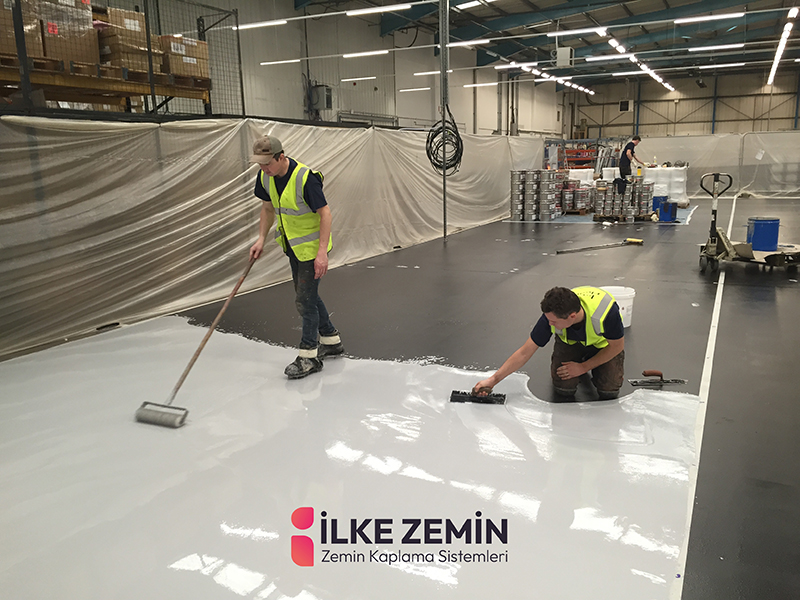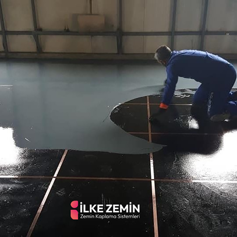 Özel formüllü ESD epoksi zemine mala ile eşit kalınlıkta yayılır.