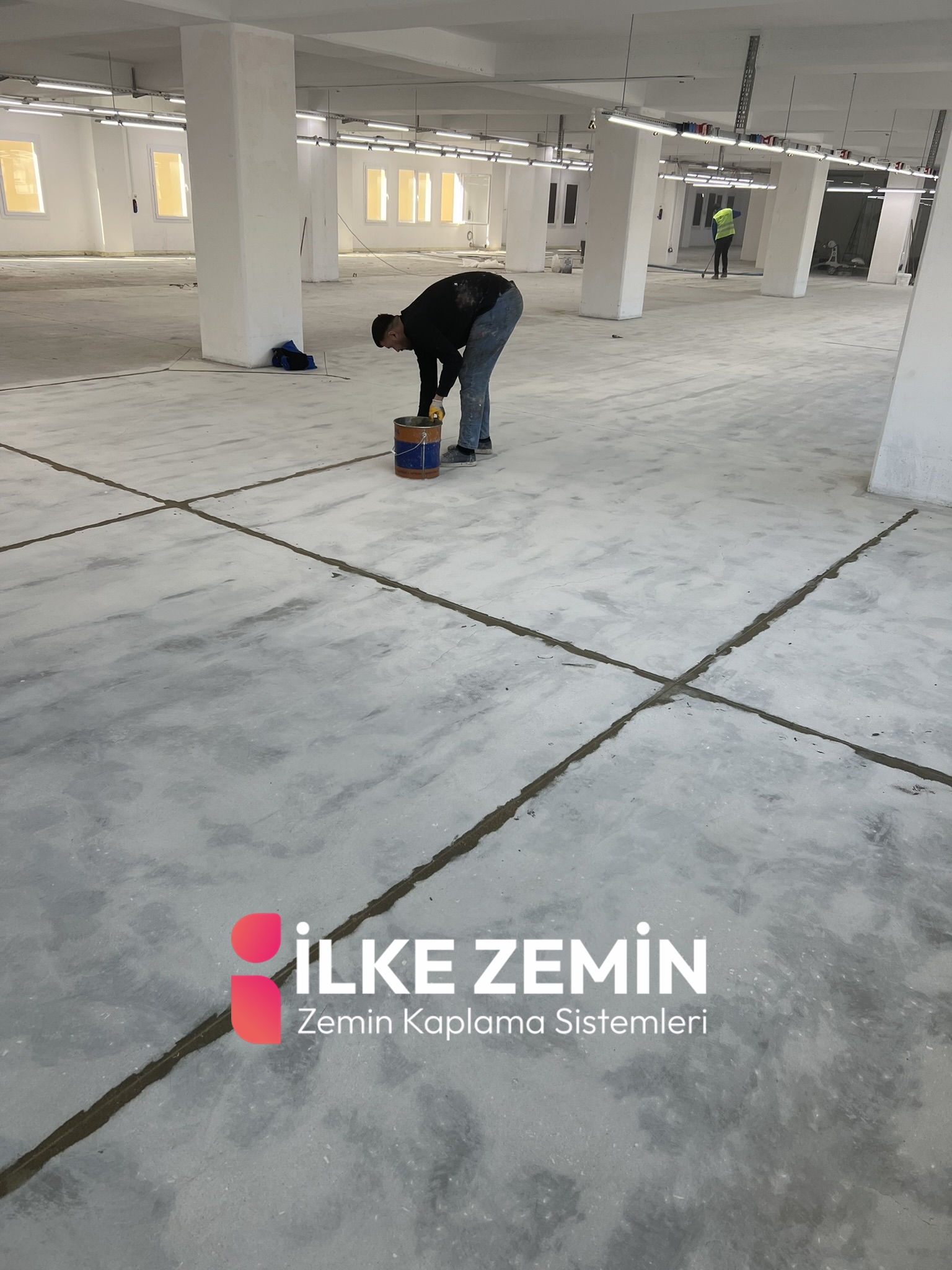 Epoksi astar uygulaması ile zemin, kaplama sistemine hazır hale getirilmiştir.